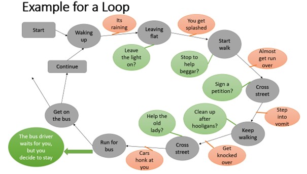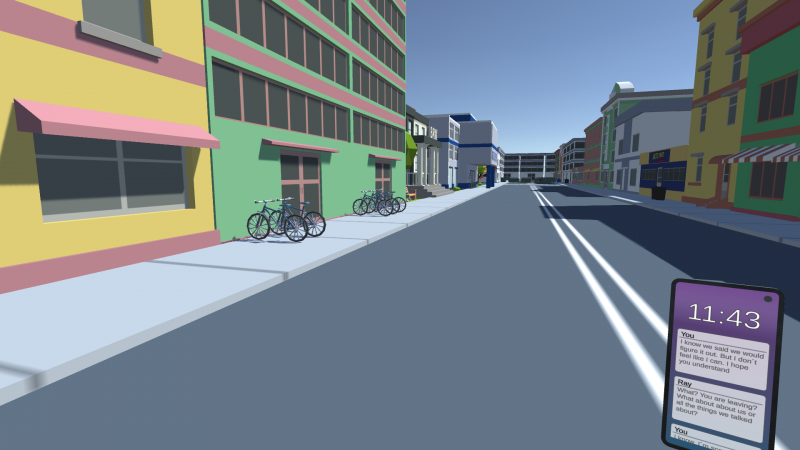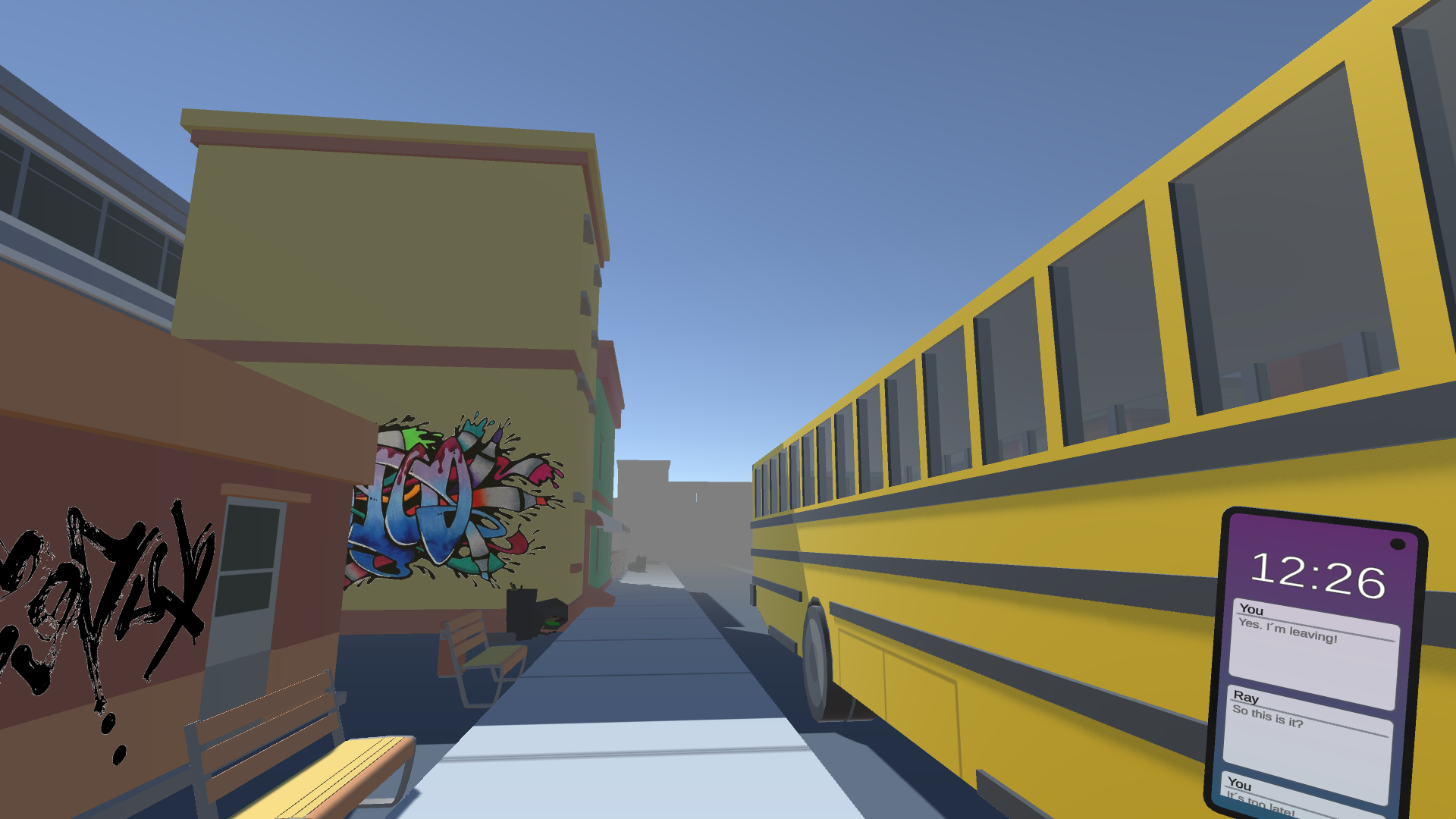 A 3D game where the player is caught in an ever-repeating loop while trying to leave the polluted city of Burnsville by bus. But as they walk through the city to the station every day and interact with the environment, they see the world around them change.